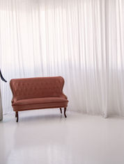 Lyst vindusområde – med lange gardiner, naturlig lys og mulighet for studiobelysning
